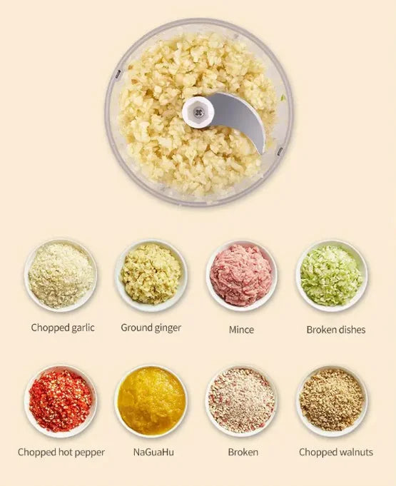 Its powerful motor and sharp stainless-steel blades ensure precise and even cutting every time. The compact, portable design makes it easy to use, clean, and store, perfect for any modern kitchen. No more tears from chopping onions or mess from manual tools!
